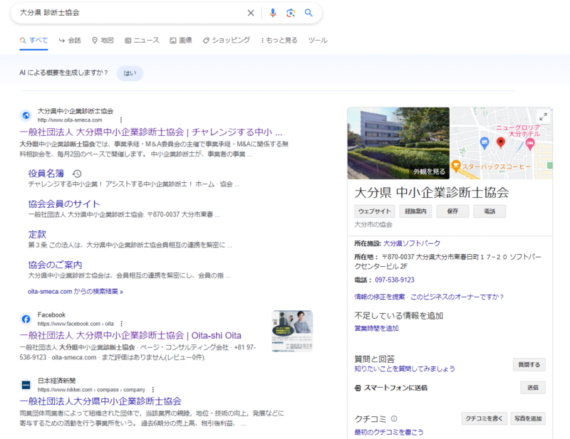 例えば私が入会している「大分県中小企業診断士協会」をGoogle検索すると以下のように表示されます。