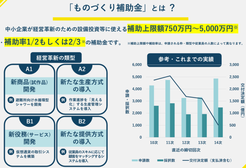 参考:ものづくり補助事業公式ホームページ ものづくり補助金総合サイト|全国中小企業団体中央会
